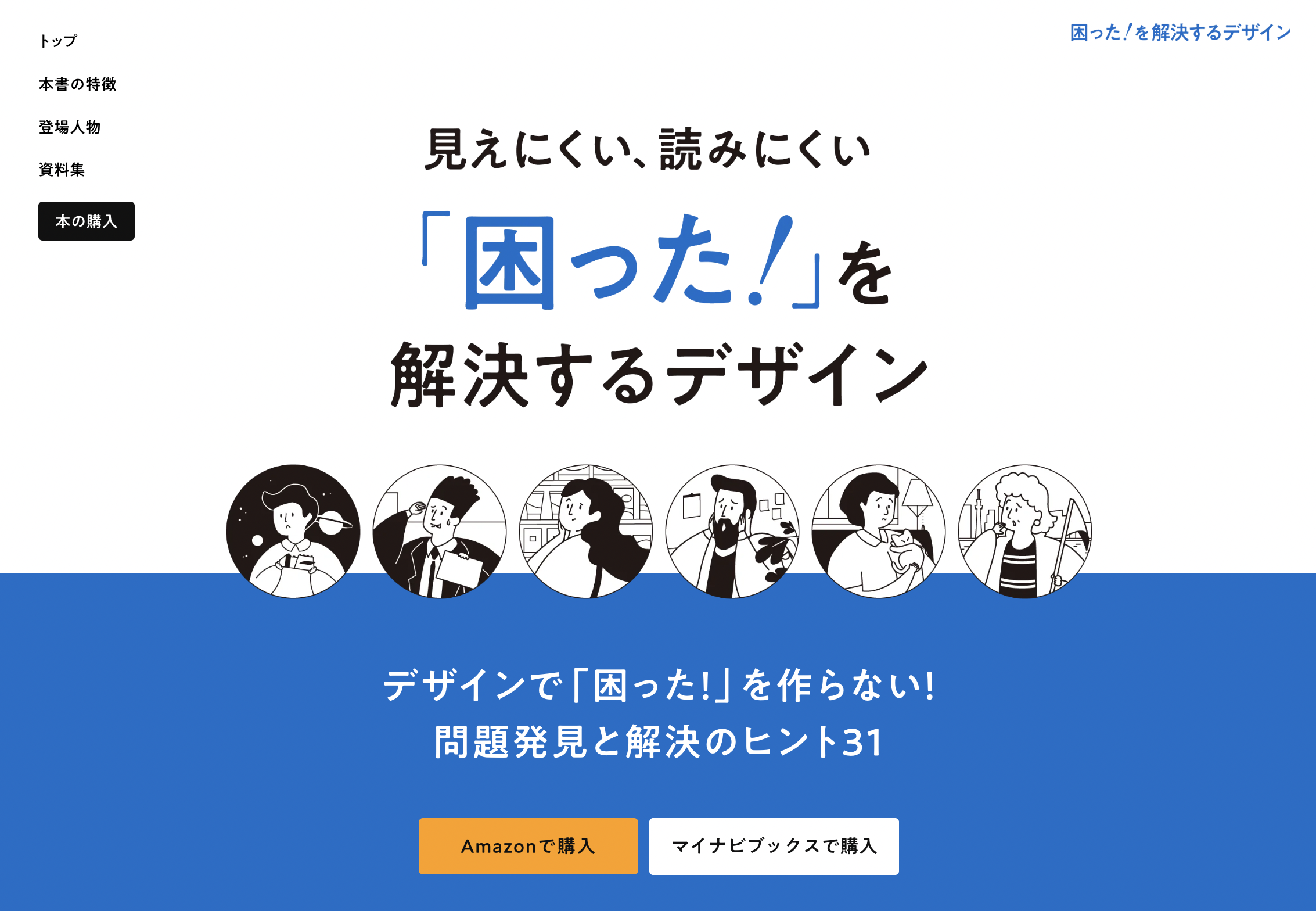 「困った!」を改善するには、困っている人に話を聞くのが一番です。本書では6人の登場人物の声をヒントに、印刷物、掲示物、コミュニケーション、ウェブのデザインを改善していきます。身近なシーンや人を思いうかべることで、デザインの捉え方が変わります。